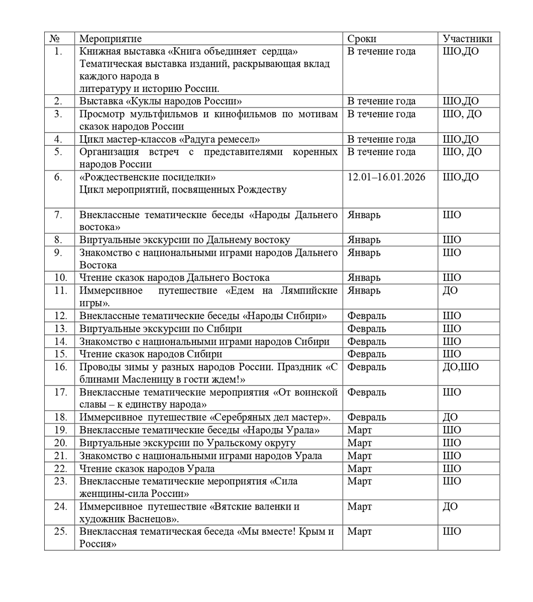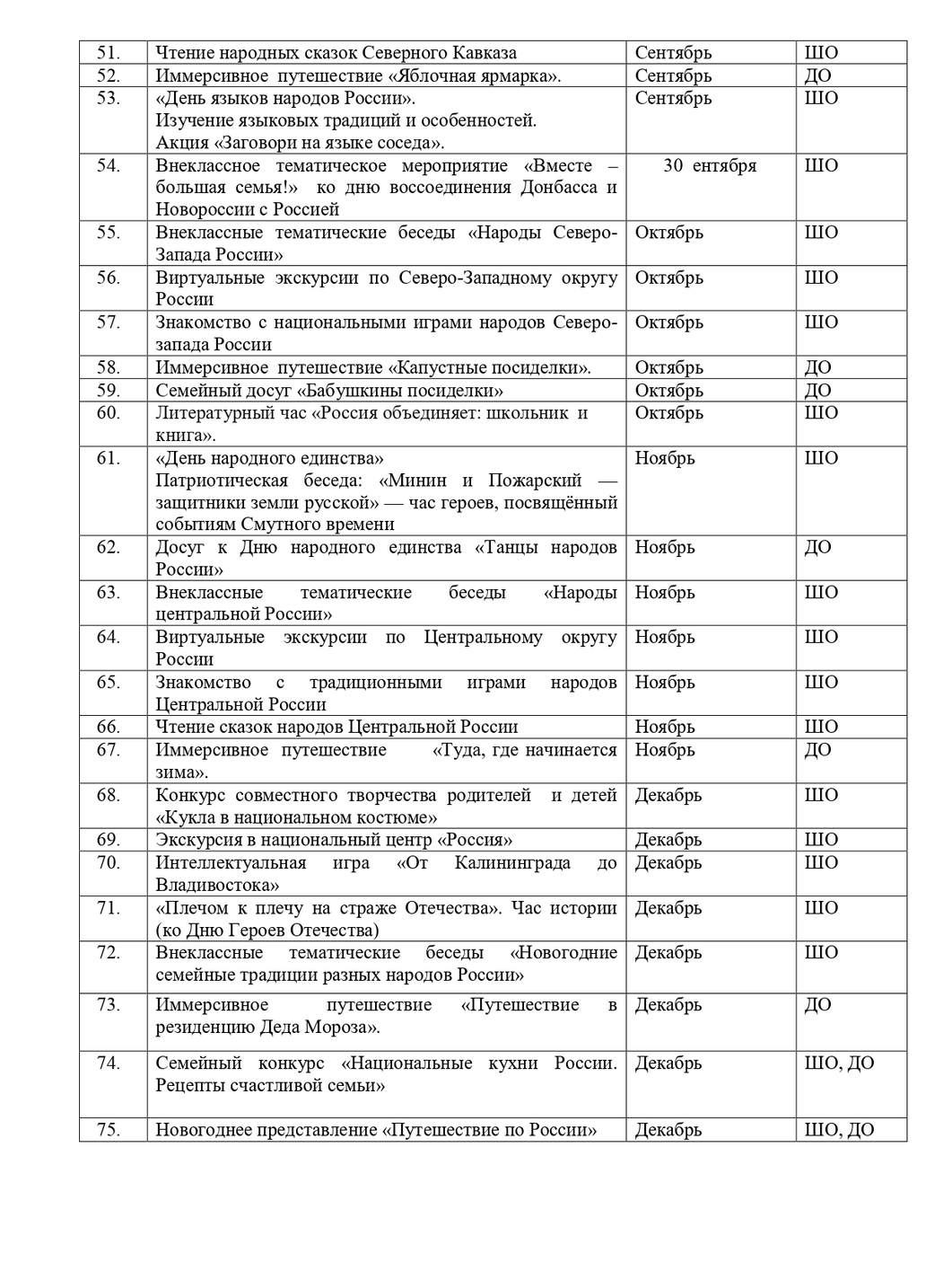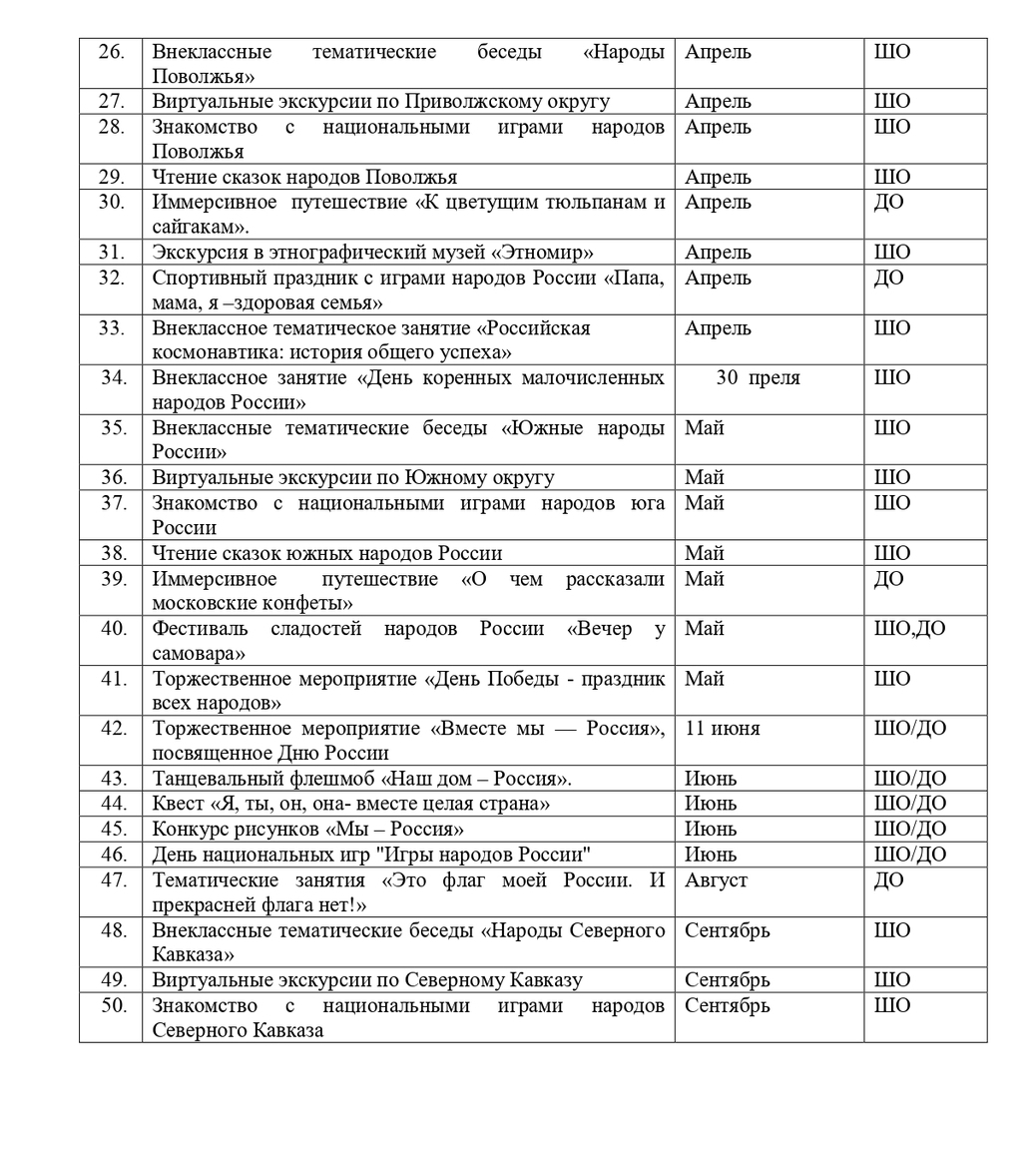 План мероприятий, посвящённых году единства народов России