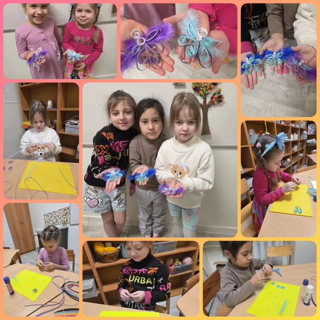 6‑я группа подарила жизнь ангелочкам из:бумажных ажурных салфеток;ватных дисков;крафтовой бумаги.