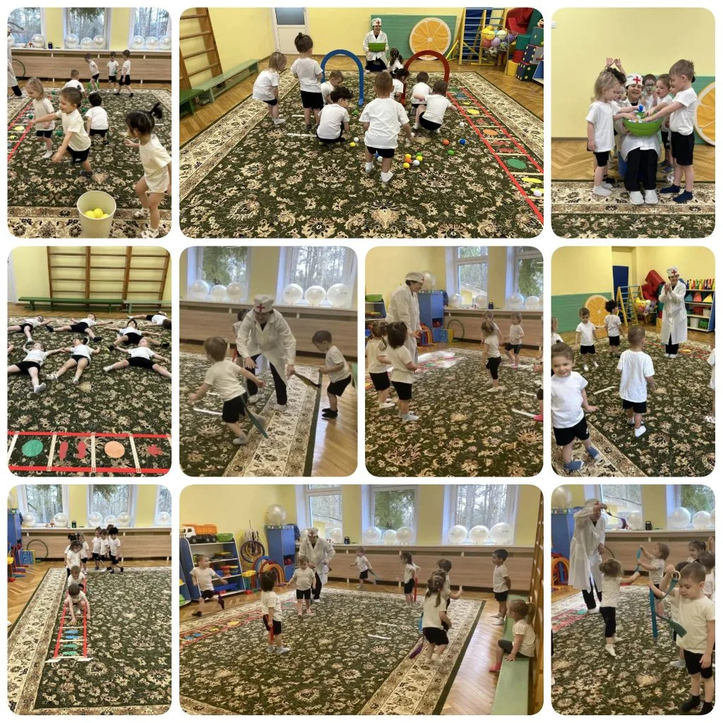Доктор Пилюлькин показал малышам увлекательные упражнения, помогающие укрепить мышцы («Прыжковая дорожка») и улучшить настроение («Веселая разминка»).