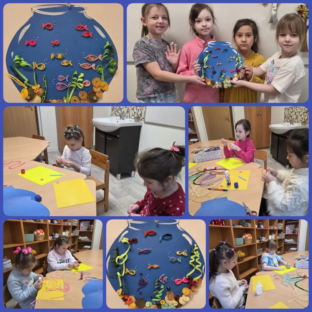 Дети окунулись в волшебный мир бумажных завитков. Каждый ребёнок создавал своих обитателей аквариума.