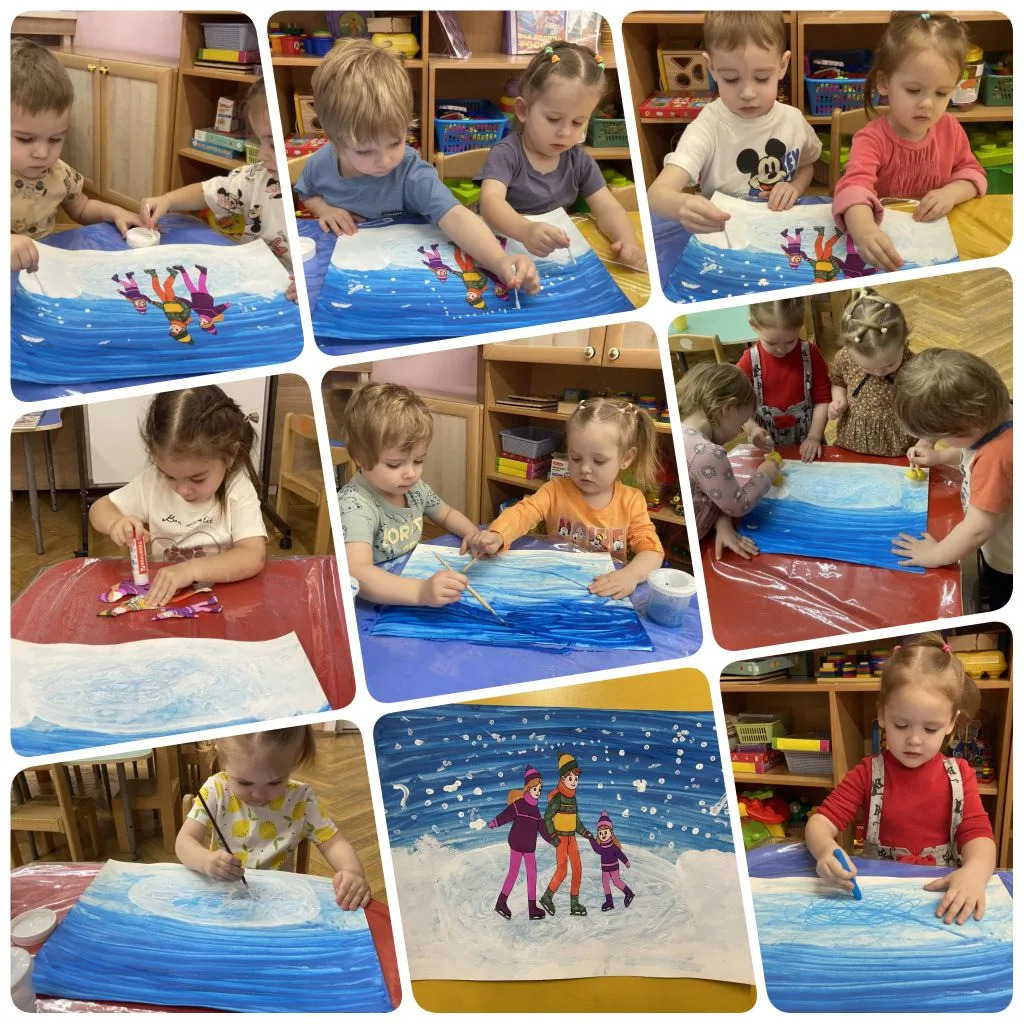 В рамках тематической недели «Семья» воспитанники первой младшей группы №1 вместе с педагогами выполнили работу «Семья на льду».