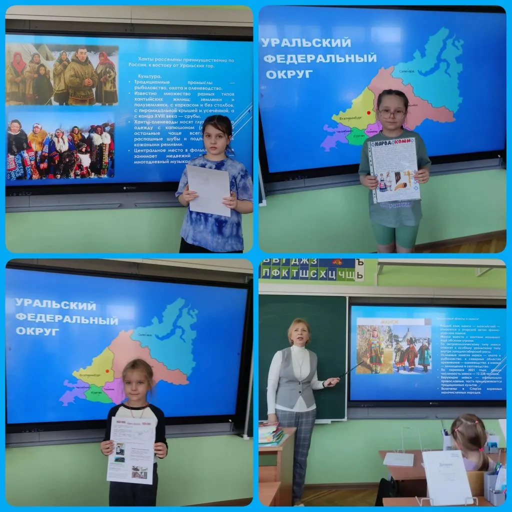 Школьники провели этнографические исследования: изучение происхождения, расселения, быта, одежды, праздников и обрядов народов Урала (коми, нагайбаки, манси и др.).