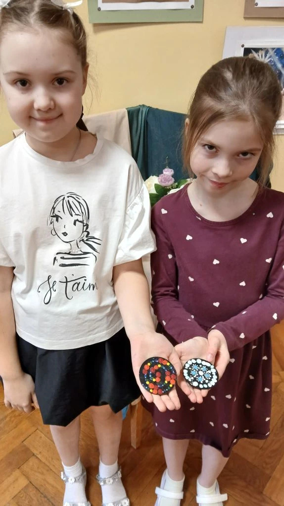 На занятии юные художники:освоили технику точечной росписи point‑to‑point и расписали деревянные медальоны;использовали специальный инструмент — дотс разного размера. С его помощью ребята научились ставить точки разных диаметров — от крошечных до более крупных, что сделало рисунки выразительными и объёмными;работали с акриловыми красками — они яркие, быстро сохнут и хорошо ложатся на дерево;самостоятельно подбирали цветовую гамму и придумывали узоры — поэтому каждый медальон получился уникальным.В процессе творчества дети:развивали мелкую моторику и координацию движений;учились работать с художественными инструментами;тренировали чувство цвета и композиции;раскрывали творческий потенциал и проявляли индивидуальность.