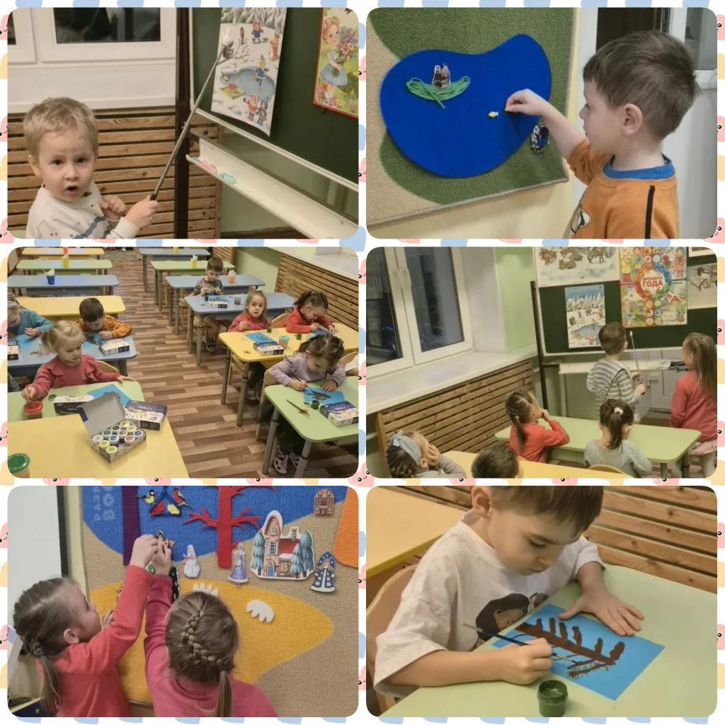 В рамках тематической недели "Здравствуй, зимушка-зима" для детей 6 группы был организован комплекс тематических мероприятий, объединяющих смену сезона, заботу о пернатых и творческое занятие по рисованию елки.